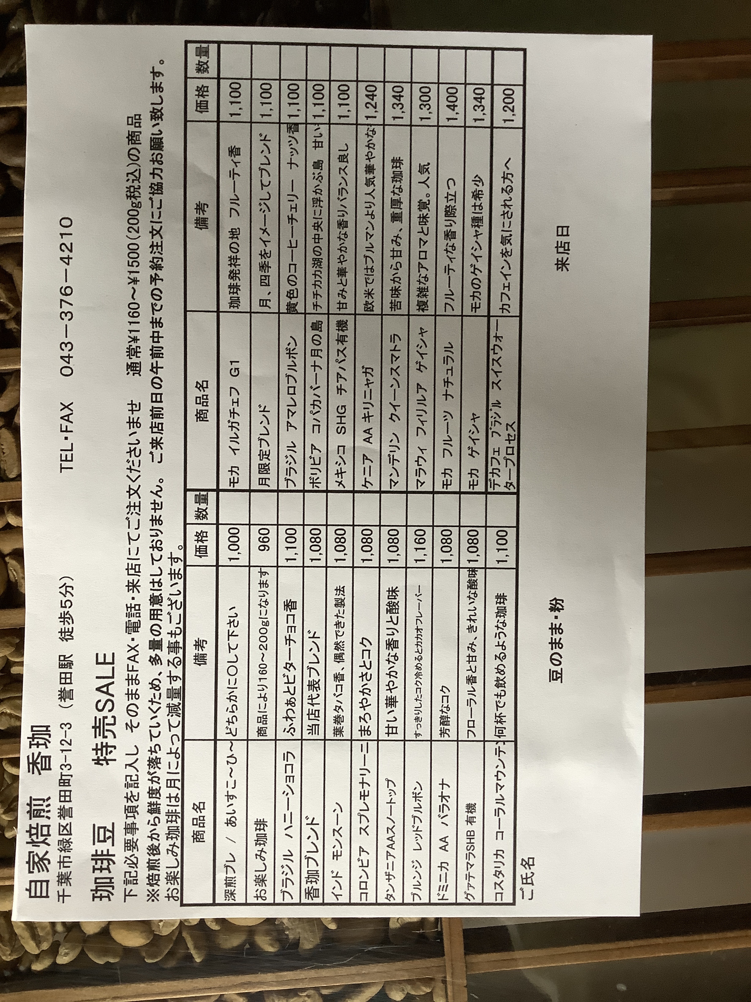 珈琲豆セール