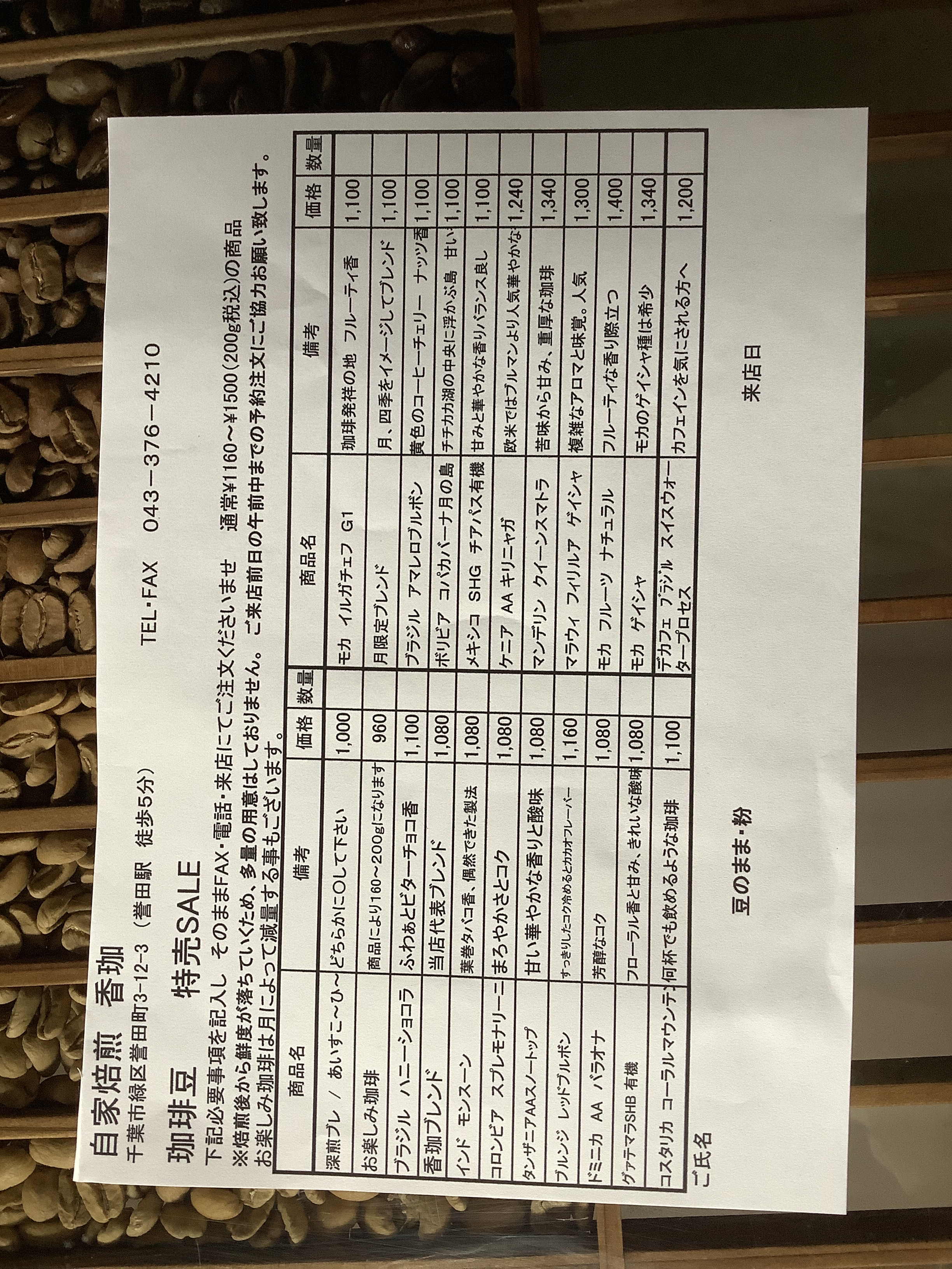 珈琲豆セール